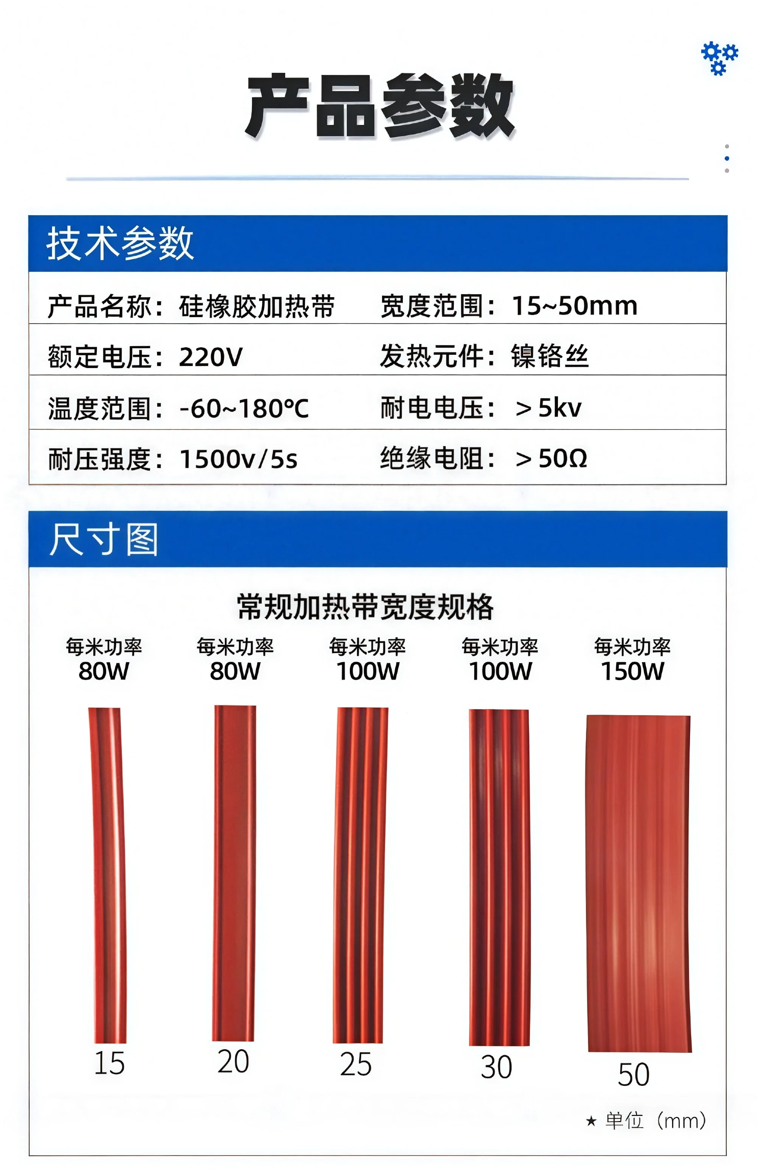 (3)產品具有極好的柔軟性,可直接纏繞在被加熱裝置上,接觸良好,加熱均勻。