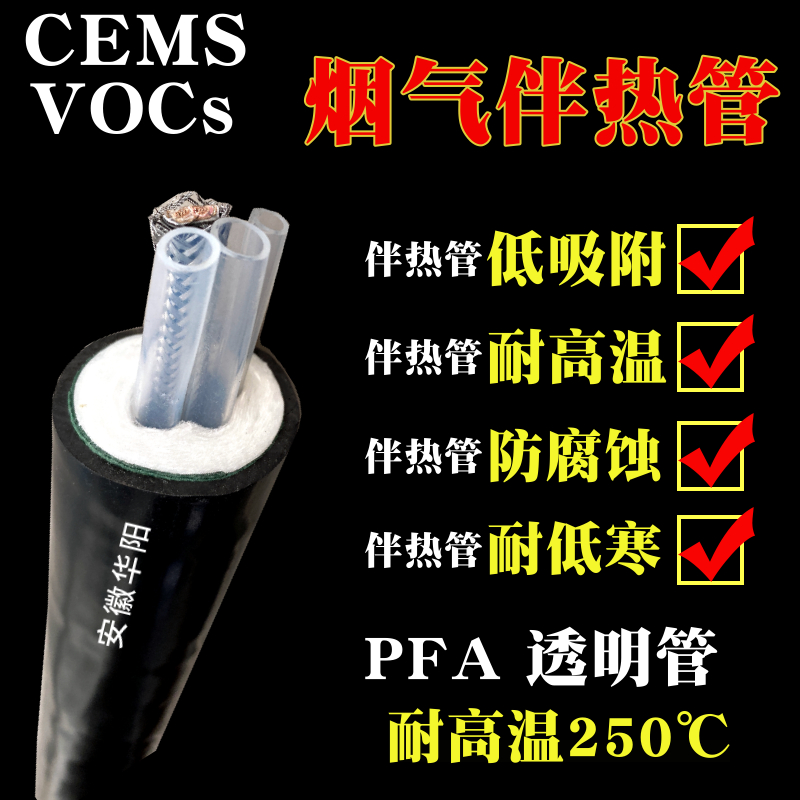 安徽華陽恒功率煙氣伴熱采樣復合管恒功率電熱帶采用鉑電阻PT100溫度探頭控制溫度,自限溫電熱帶的自動限溫功能,可以保證采樣管內維持一定的溫度,從而盡可能保證采集樣品與初始值保持一致,最終確保環保監測系統連續、正確地采集樣氣。根據采集樣氣體的成份、溫度等實際情況,伴熱采樣復合管中采樣導管可以選用不同的材質,如PFA、FEP、PVDF、PE、尼龍610等等, 根據不同環境溫度的要求可采用合適的伴熱帶(恒功率電熱帶、自控溫電熱帶),另外還可以根據用戶要求添加補償導線、電源線等。