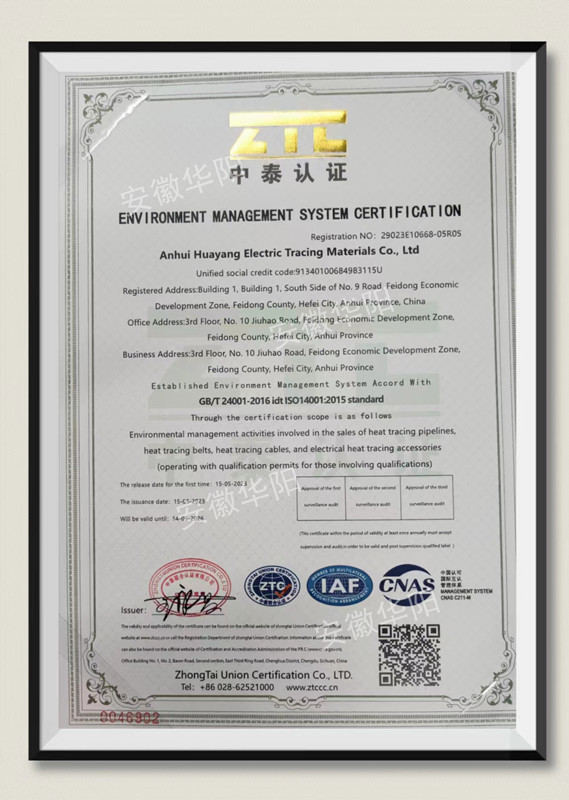 ISO14001環(huán)境管理體系認(rèn)證證書,是確認(rèn)企業(yè)實(shí)施環(huán)境管理體系符合ISO14001標(biāo)準(zhǔn)要求的國(guó)際性認(rèn)證證書,可以證明我們公司的環(huán)境保護(hù)意識(shí)和環(huán)保措施已得到國(guó)際認(rèn)可。獲得環(huán)境管理體系認(rèn)證證書,增強(qiáng)了我司的環(huán)境管理實(shí)力,提升了我司的環(huán)保形象,同時(shí)也是我司履行社會(huì)責(zé)任的重要證明之一。