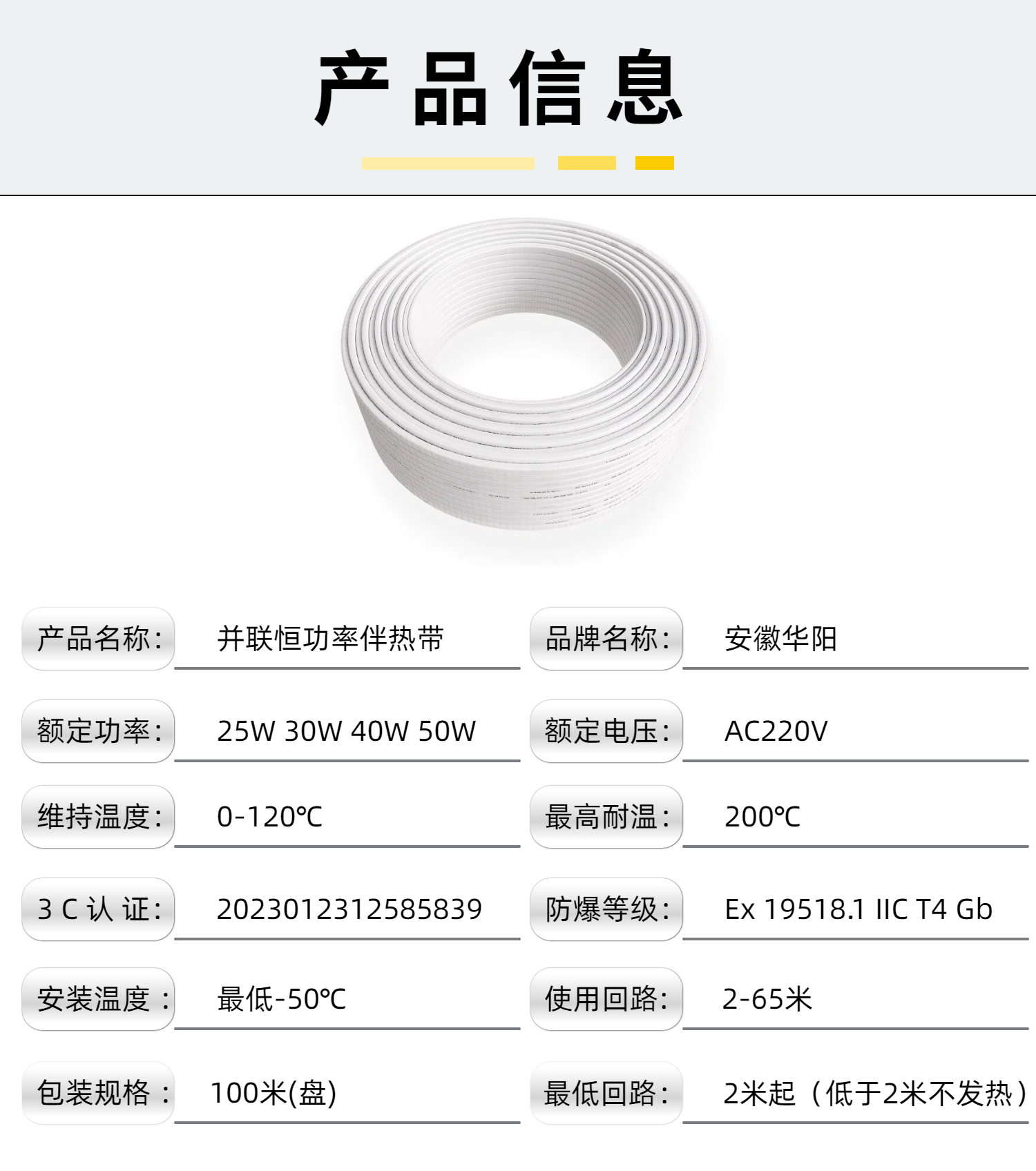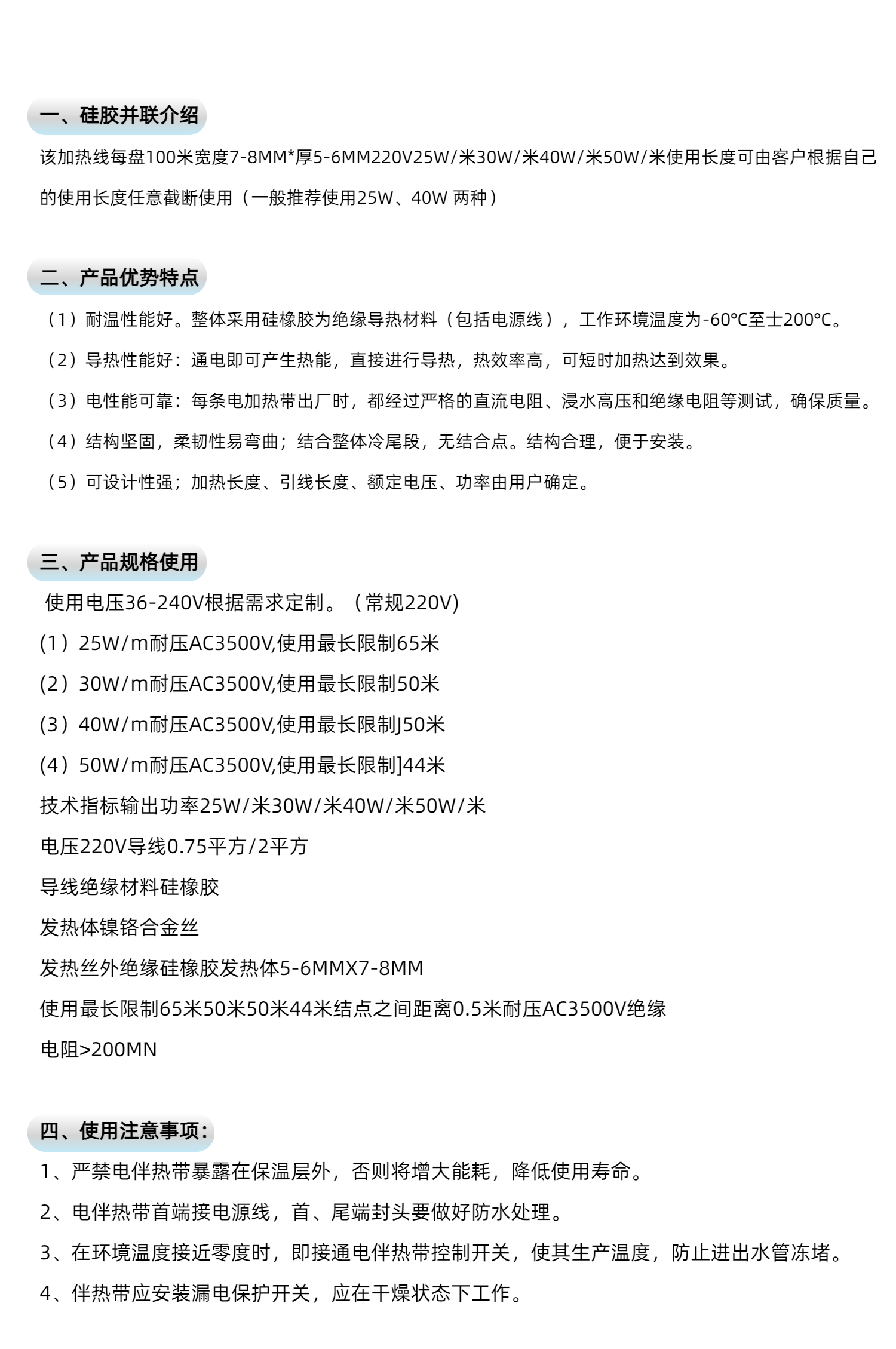 硅橡膠并聯(lián)式恒功率電熱帶